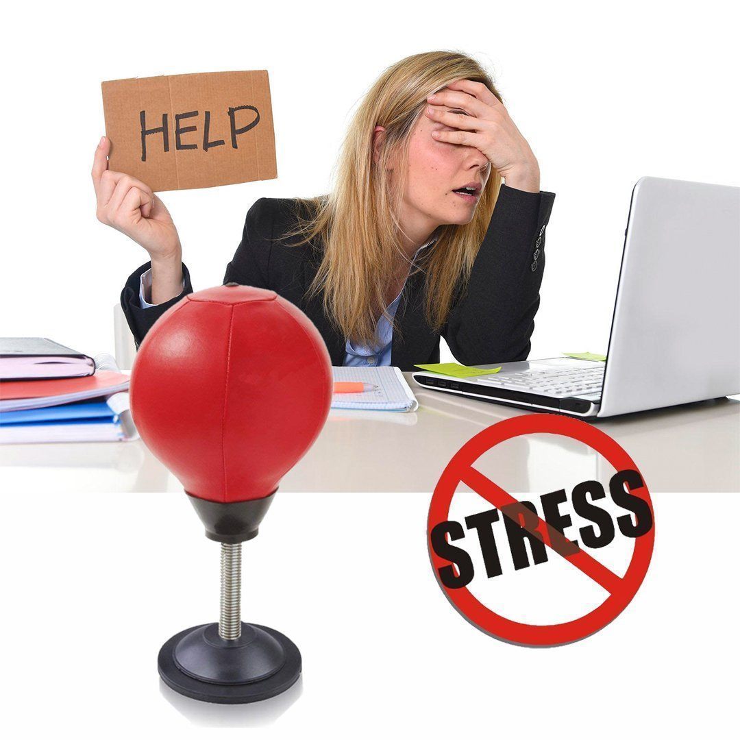 Relieve Stress. Take away your strain and frustration by hitting this table top punching bag.